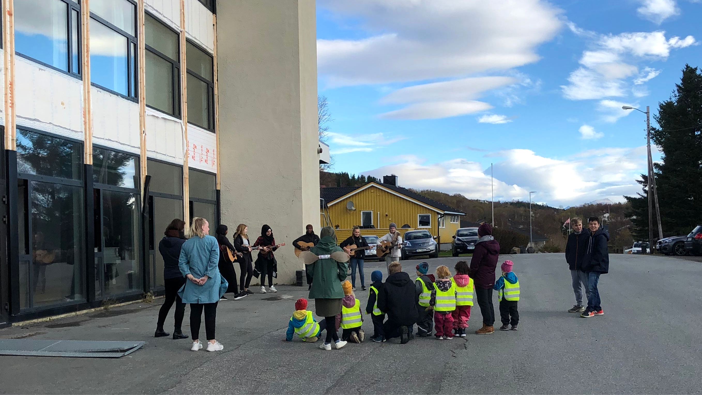 10.trinn på Alstad ungdomsskole har i mange år gjennomført omfattende konserter og forestillinger rettet mot barnehagebarn i Bodø. Koronapandemien ble en utfordring, men kreative elever og lærere bestemte seg for en utendørs versjon i skolens nærmiljø. Barnehageforestillingen tok form, og ble en løype med stasjoner hvor barnehagebarna fikk oppleve livemusikk, bevegelse og kunstneriske innslag.